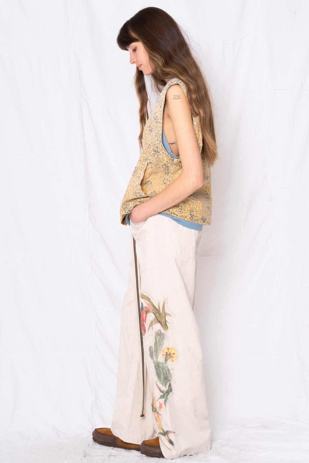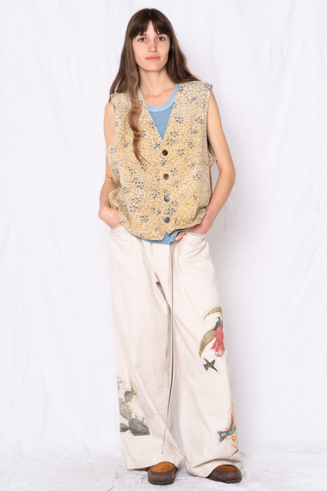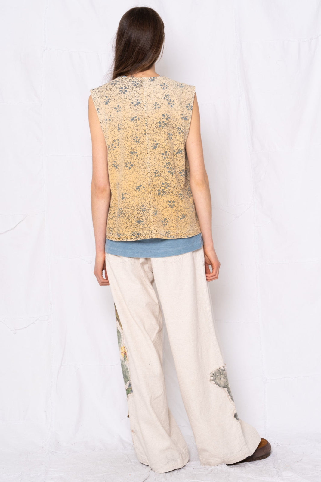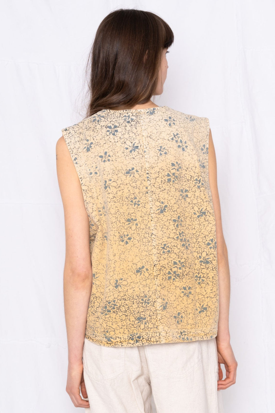 Brooklyn Vest Power Flower Print Hand Printed in LA Sunfaded Banana