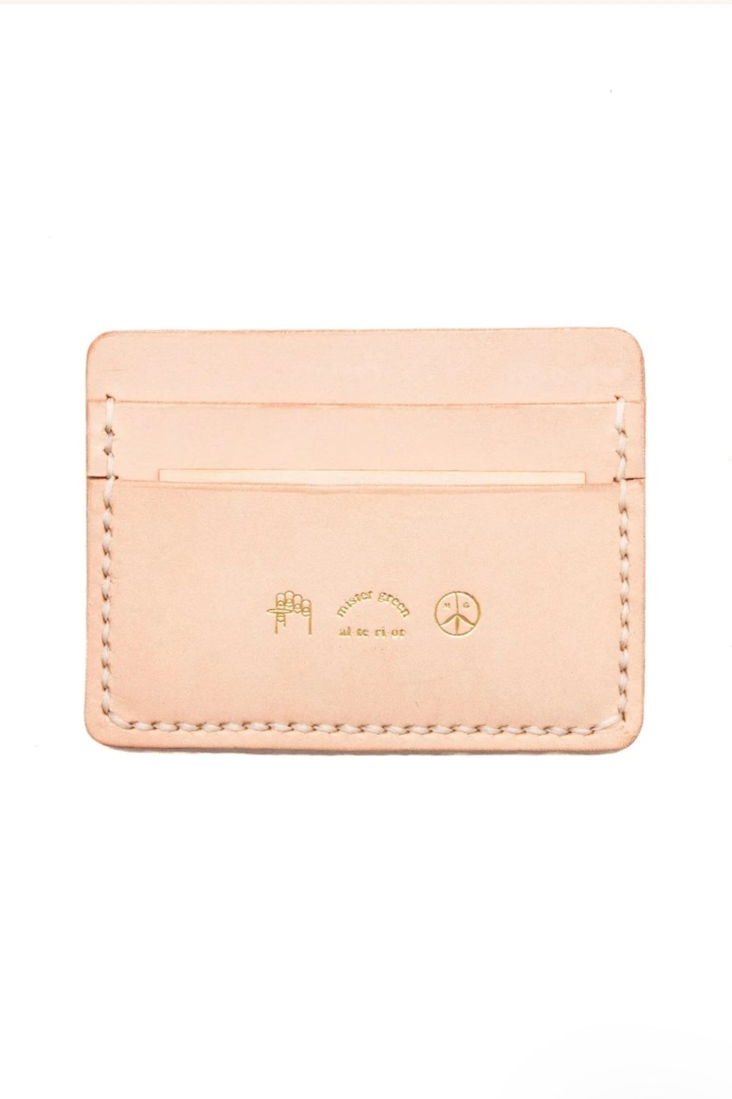 Made by hand using vegetable tanned Italian cowhide leather in Vancouver British Columbia, Canada. Gold foil stamped collaborative mark.This product is made with raw materials and will come rigid in nature. Every piece needs to be broken in.